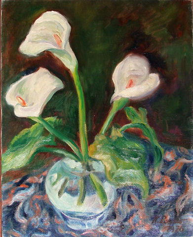 Drei Calla in blauer Vase 1970